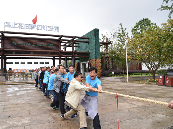 周六一早,大家身著統一服裝坐車來到杭州灣海上花田。在景區門口集中后,大家先開展了一場男女混合拔河比賽,為本次活動預熱。隨著公司袁董事長一聲令下,比賽正式開始,場上的雙方隊員奮力地拼搏,咬緊牙根,齊心協力向后拉,場下拉拉隊也不甘示弱,熱情地為隊員吶喊助威,現場的氣氛一浪高一浪,營造了本次活動歡樂、熱烈的氣氛。拔河比賽后,大家輕松的開始了游覽之旅。
