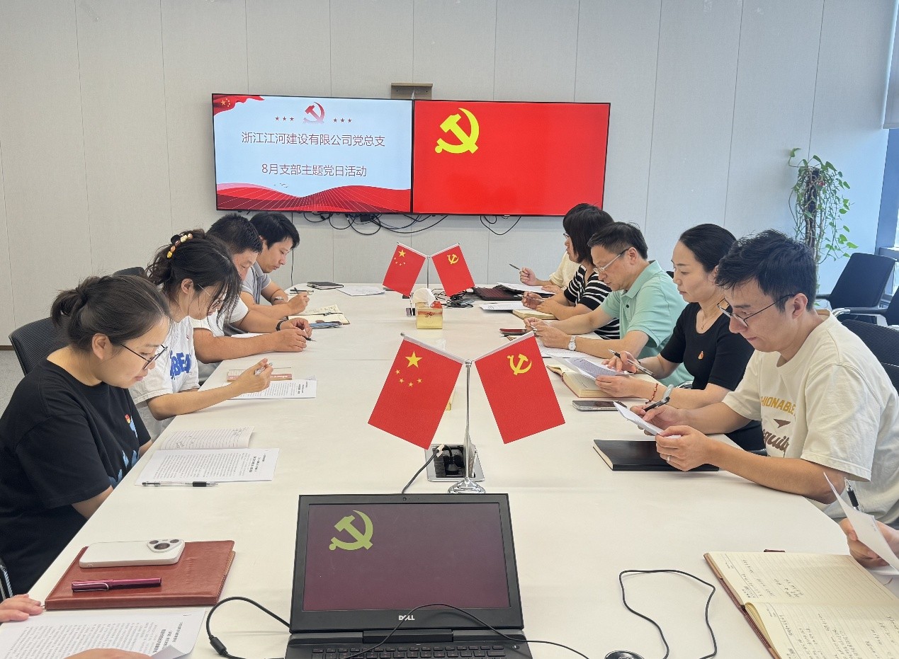 8月20日,浙江江河建設有限公司在杭州總部開展8月份“支部主題黨日”活動。全體黨員、流動黨員、入黨積極分子通過“線上+線下”參加活動,部分黨員以微群收看資料的方式參加活動。