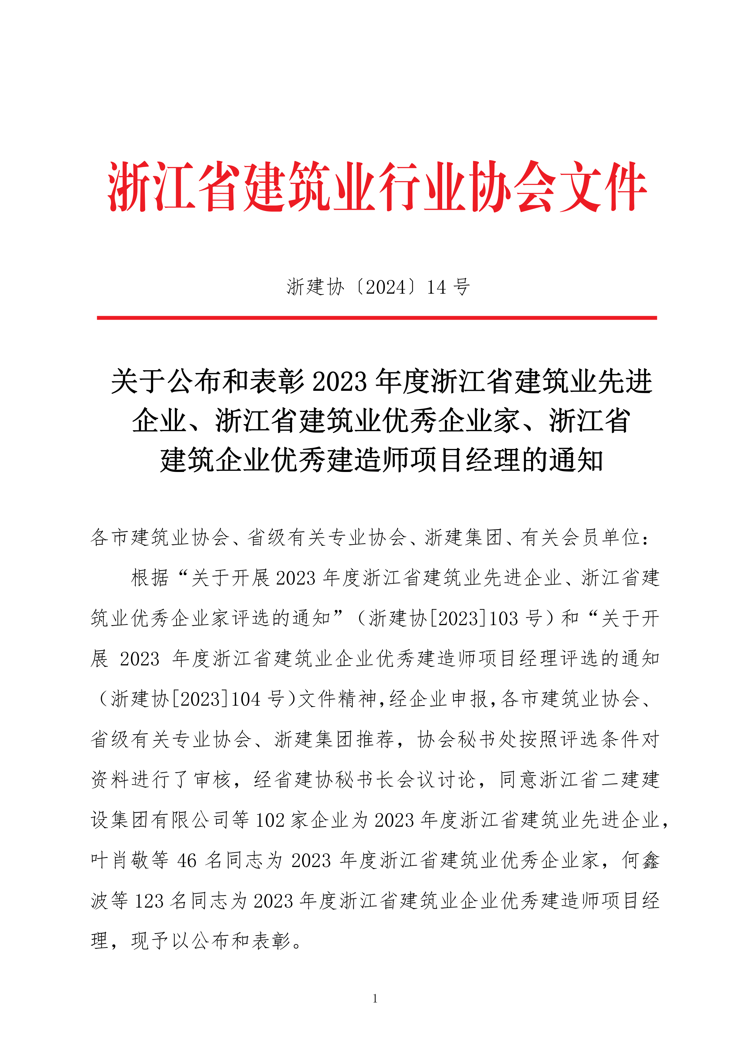 近日,浙江省建筑業行業協會公布2023年度浙江省建筑業先進企業和浙江省建筑業優秀企業家名單,公司再次...