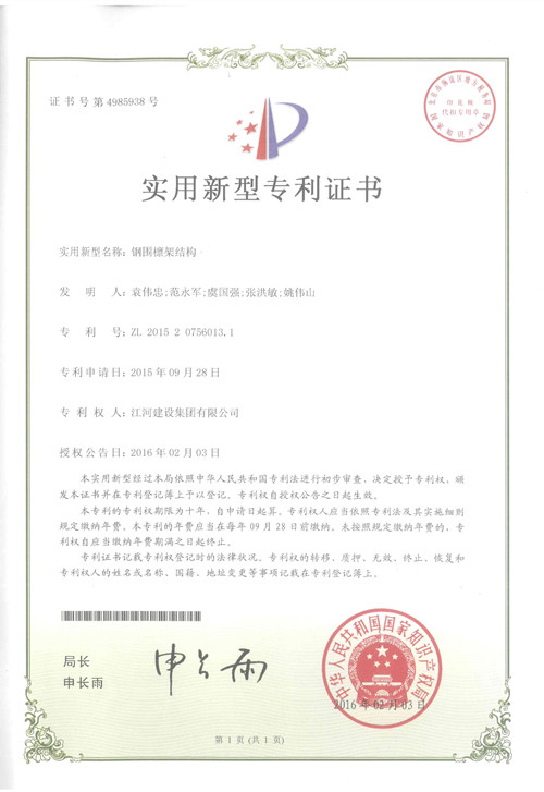 近日,我公司申報的“鋼圍檁架結構”技術通過了國家知識產權局的批準,獲得了國家實用新型專利授權。該項專利解決了傳統結構抗沖擊性能差、防滲性能弱的難點,有效保證了堤防的安全運行,具有較好的經濟效益、社會效益和生態效益。