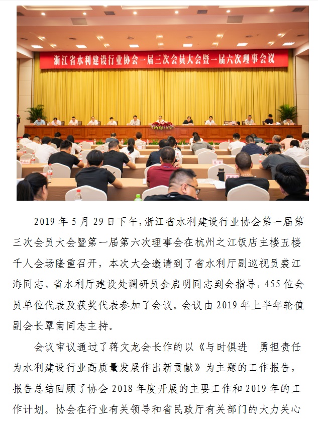 浙江省水利建設行業協會一屆三次會員大會暨一屆六次理事會議召開