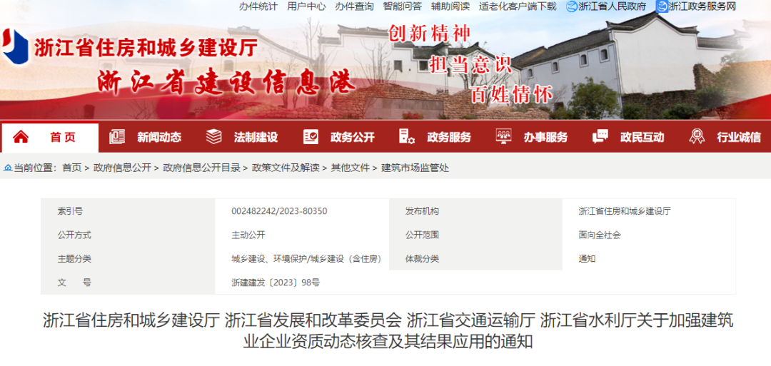 為深入貫徹落實《國務院辦公廳關于促進建筑業持續健康發展的意見》(國辦發〔2017〕19號)、《浙江省人民政府辦公廳關于進一步支持建筑業做優做強的若干意見》(浙政辦發〔2022〕47號)和《住房城鄉建設部關于進一步加強建設工程企業資質審批管理工作的通知》(建市規〔2023〕3號),加快構建以信用為基礎的新型監管機制,持續優化工程建設招標投標領域營商環境,加強高標準市場體系建設,經研究,決定在房屋建筑和市政工程、公路水運工程、水利工程招標投標領域分階段應用建筑業企業資質動態核查結果?,F將有關事項通知如下: