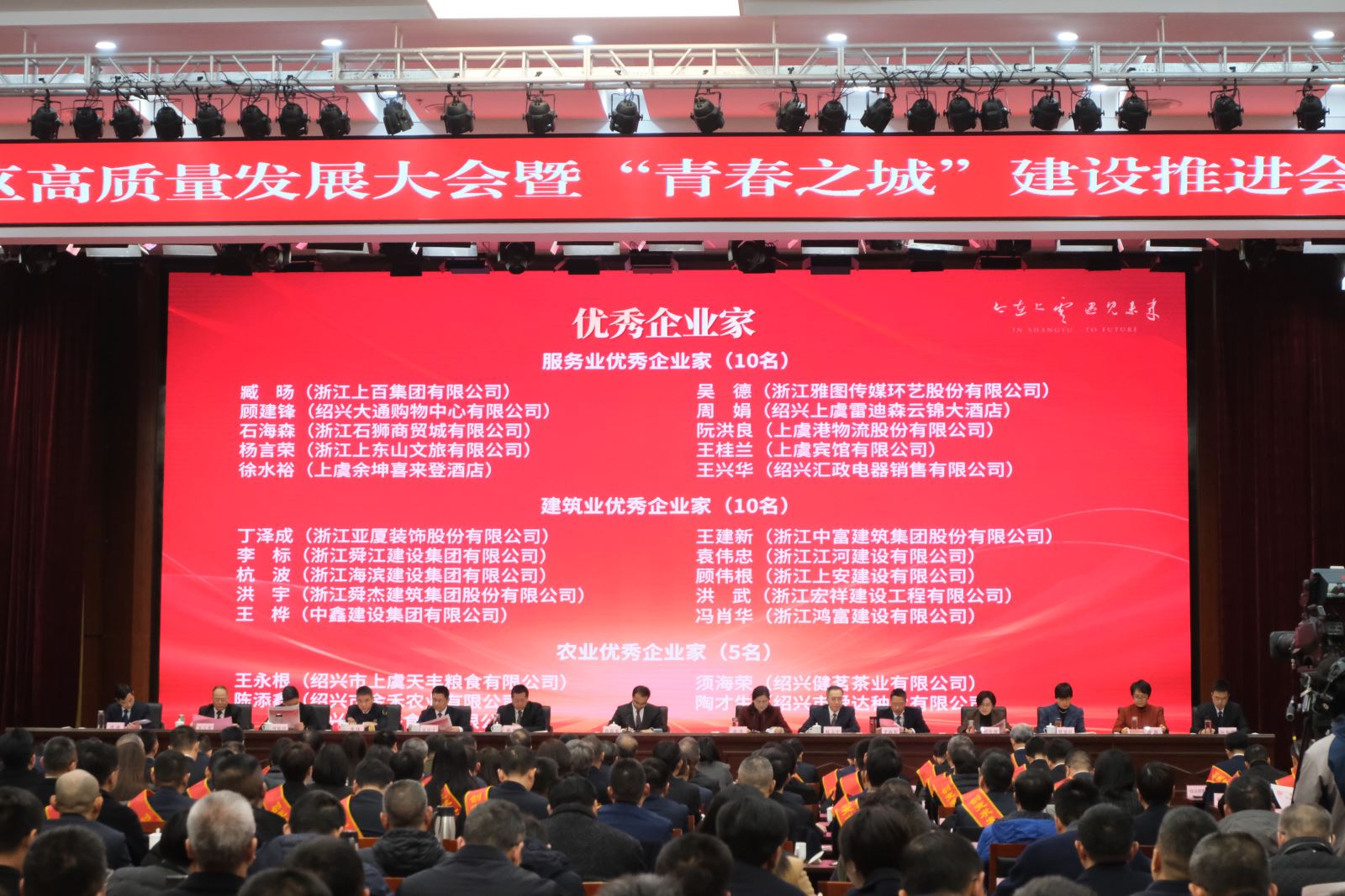 2月6日,上虞區召開全區高質量發展大會暨“青春之城”建設推進會以及全區建筑業大會,一大批集體和個人受到隆重表彰。浙江江河建設有限公司榮獲建筑綜合實力廿強企業,董事長袁偉忠榮獲全區建筑業優秀企業家稱號,受到區委、區政府表彰。