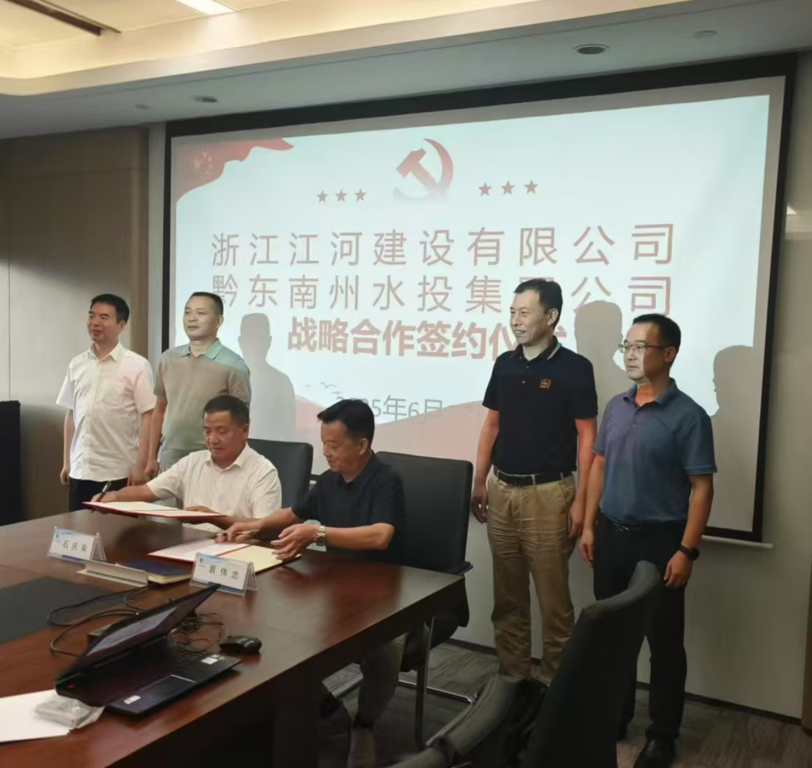 雙方合作有基礎、有韌性,將繼續保持信心、夯實基礎,再次達成戰略性合作意向。會上簽署了《黔東南州水投集團與浙江江河建設有限公司戰略合作協議》,旨在開啟雙方合作的再一個“黃金十年”。會上還就已合作項目驗收、資金回收等事項進行了商談。